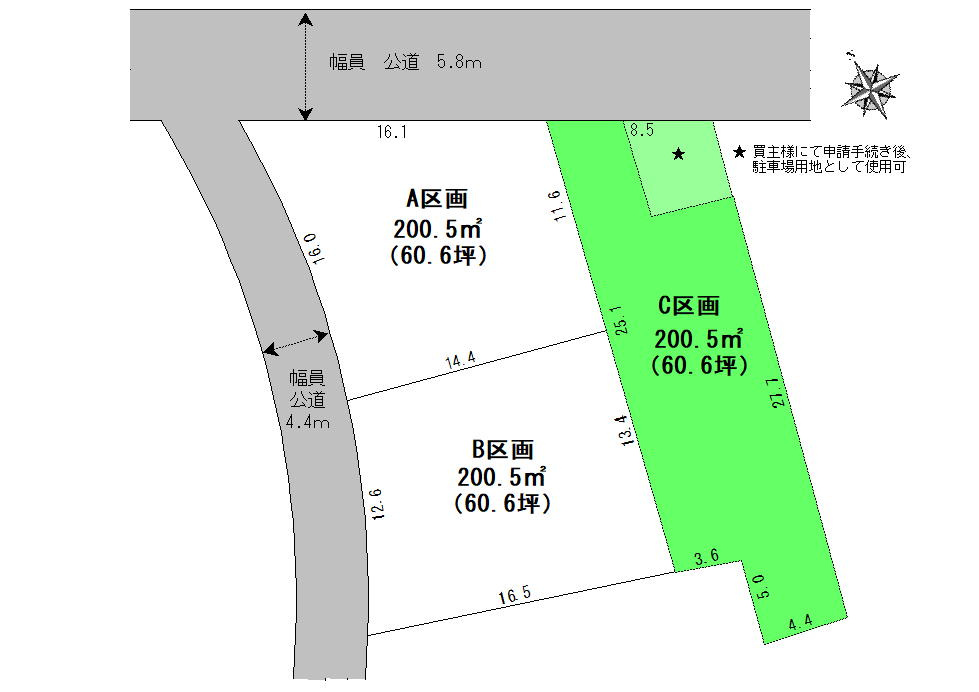 | 接道状況 | 一方 (北側 公道5.8m 間口3.9m) | ||