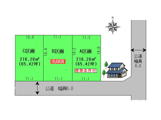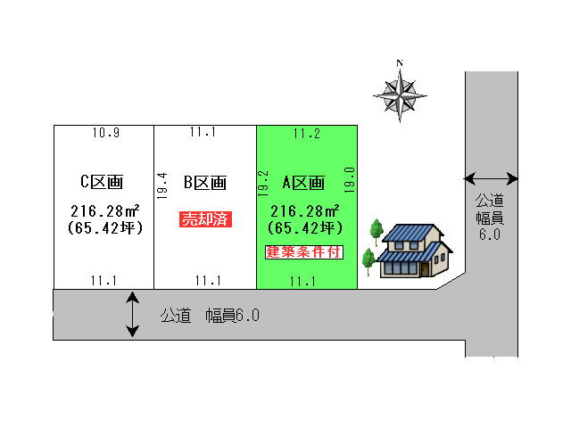 | 接道状況 | 一方 (南側 公道6.0m 間口11.0m) | ||